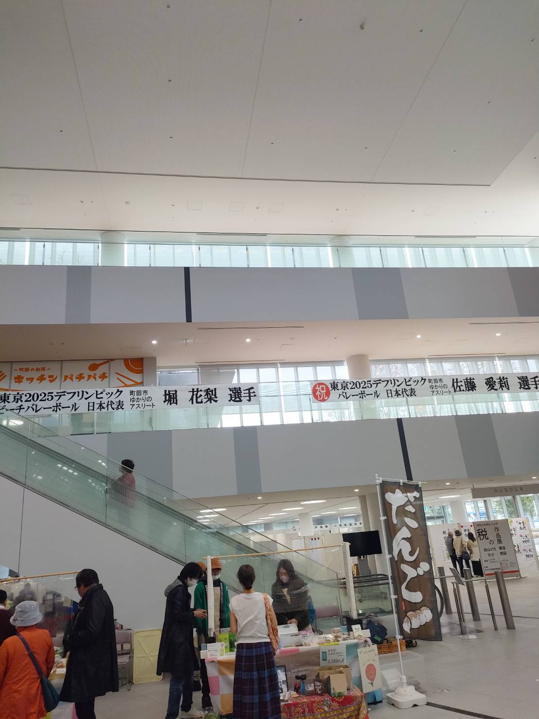 町田市出身のビーチバレー堀選手、バレーボール佐藤選手応援の告知が市役所に掲示されてます。